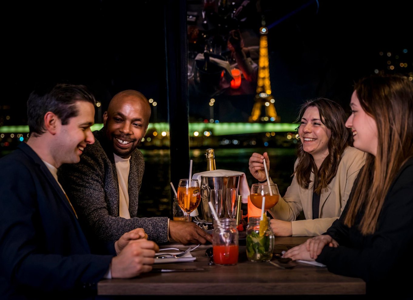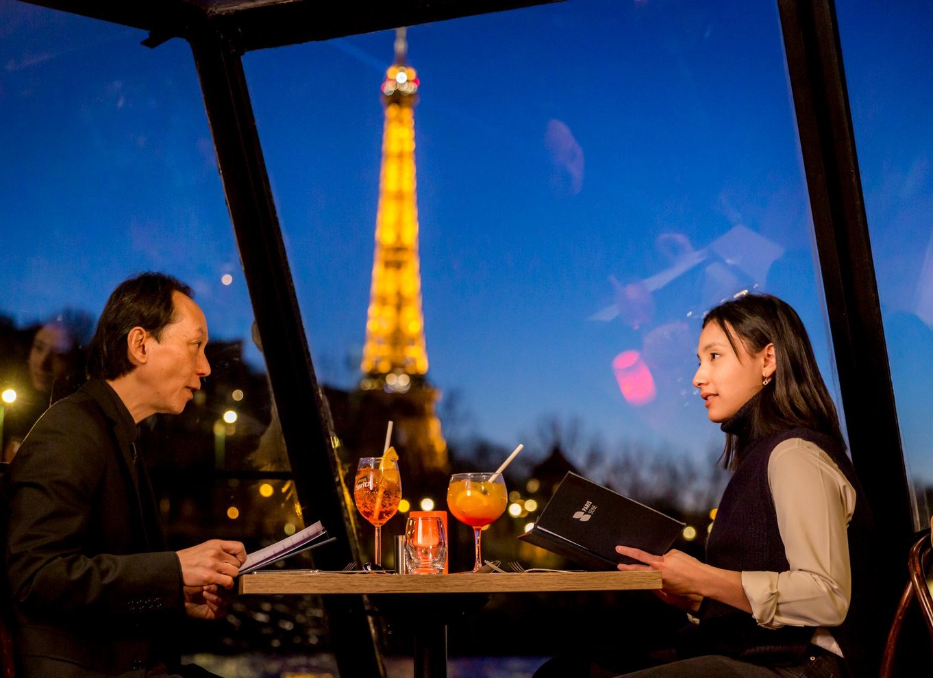 Por el camino, te servirán un menú con entrante, plato principal y postre gourmet, con café o té para terminar. Regresa a Puerto Solferino a las 20:15 para continuar las aventuras nocturnas por tu cuenta.
